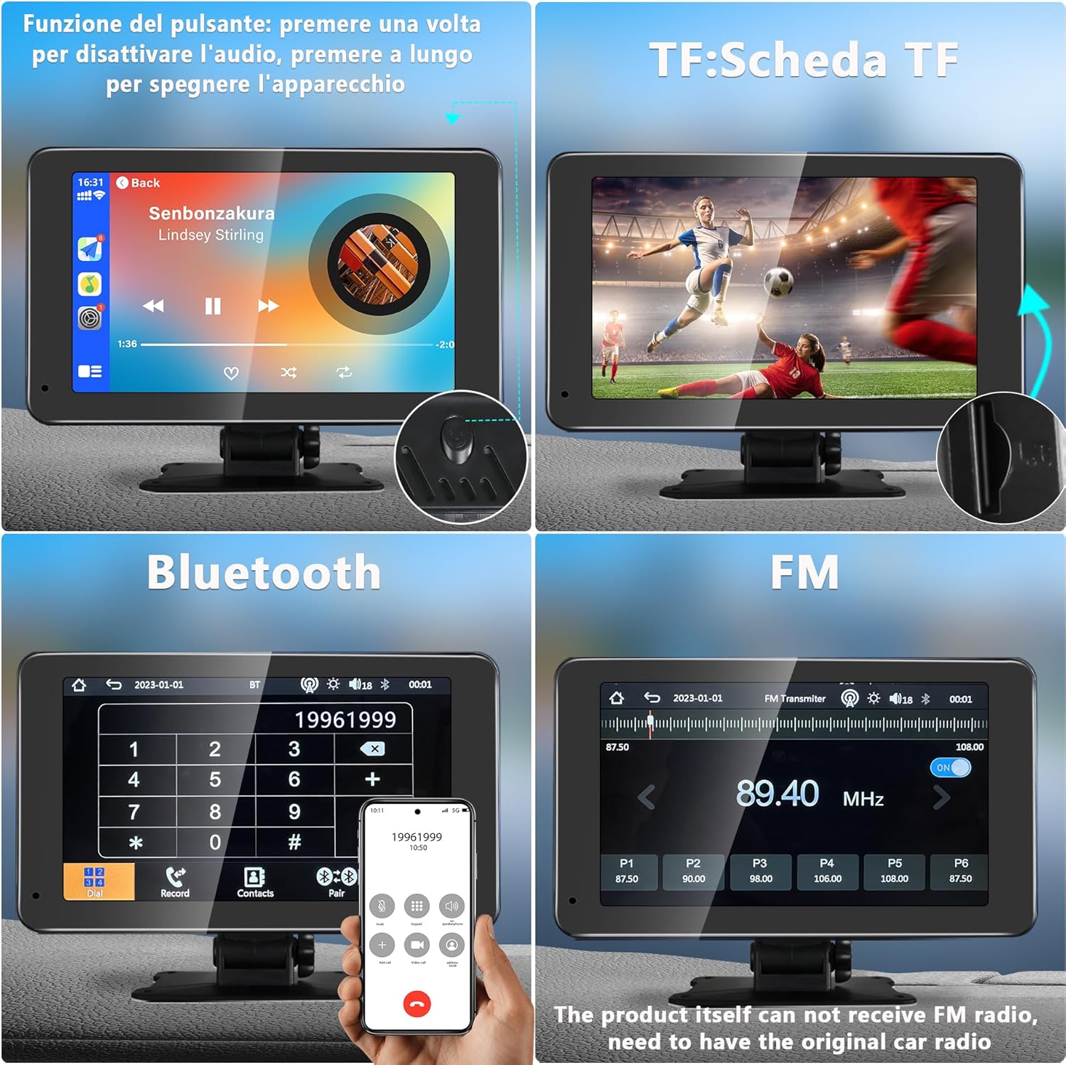 Questo schermo in altissima definizione touch è la soluzione ideale per avere navigazione GPS, intrattenimento e sicurezza sempre a portata di mano.