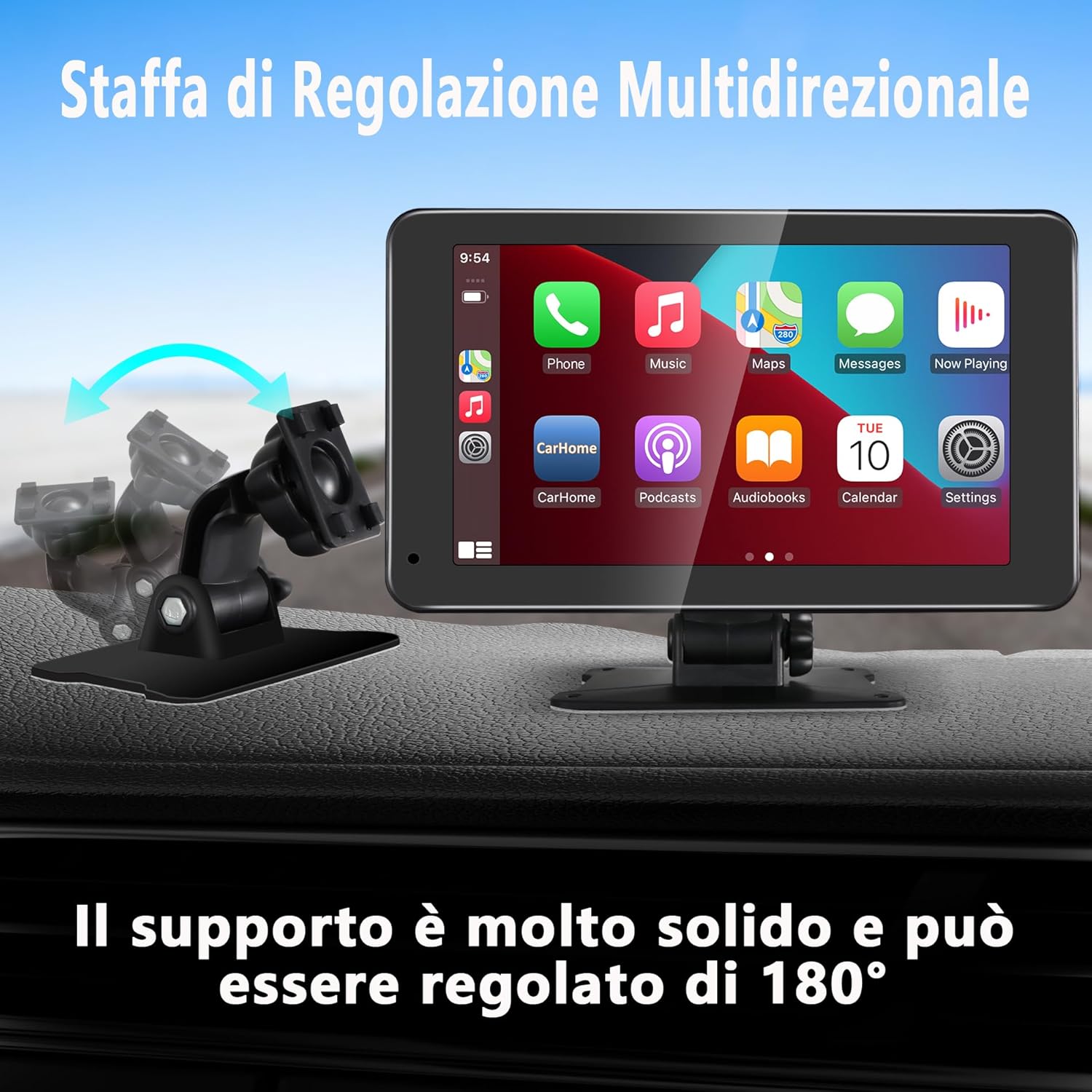 E’ dotato di speciali ventose che ti permettono di installarlo facilmente sul cruscotto o sul parabrezza.